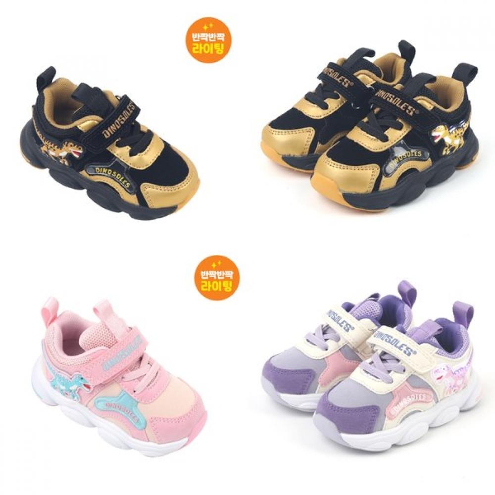 The DinoSolz Sparkling Sneakers T-Rex On Toddler DNKCF3TSON11 is a toddler sneaker featuring a T-Rex design with a cute animation style, making it visually appealing. The low-top style is enhanced by a glittering effect, attracting attention. It is equipped with an air tank-type cushioning system suitable for the growth of a toddler’s feet, and the shoe allows for easy self-wearing through Velcro or lace options.