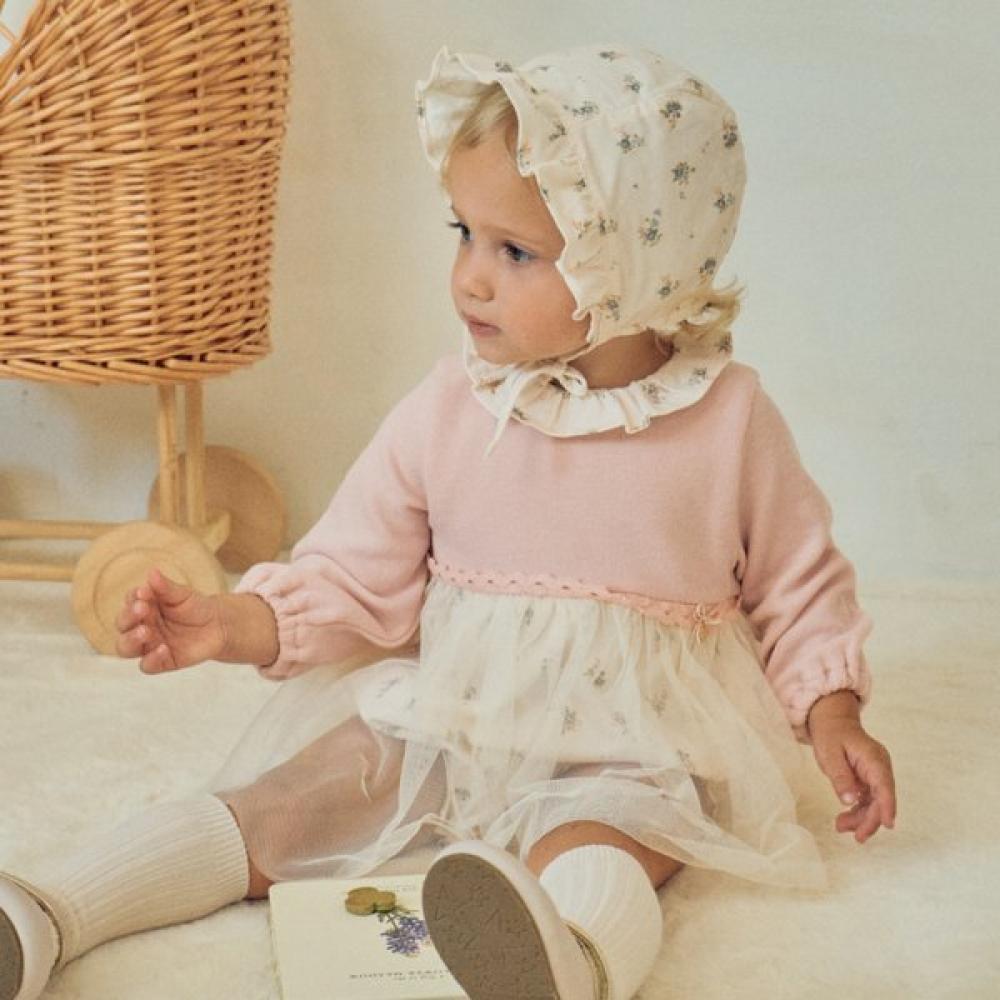 The Organic Mom Flora Long Sleeve Bodysuit and Bonnet Set MKFTQS01 is designed for newborns and children under 12 months. This product is made of soft materials to ensure comfort for babies, with a design featuring a natural floral pattern.