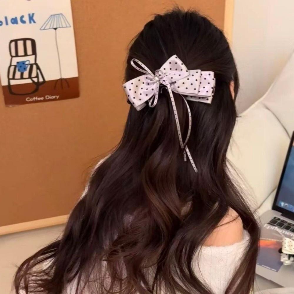 Sweet Polka Dot Bow Hair Clip Cloth Sweet Hair Accessories Elegant Ribbon Banana Clip School
