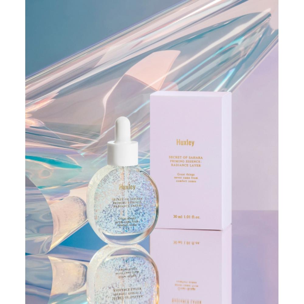 HUXLEY Priming Essence Radiance Layer 30ml is a multi-base product that serves as both an essence and primer, used at the final step of skincare. This product keeps skin supple and hydrated while organizing its texture smoothly.