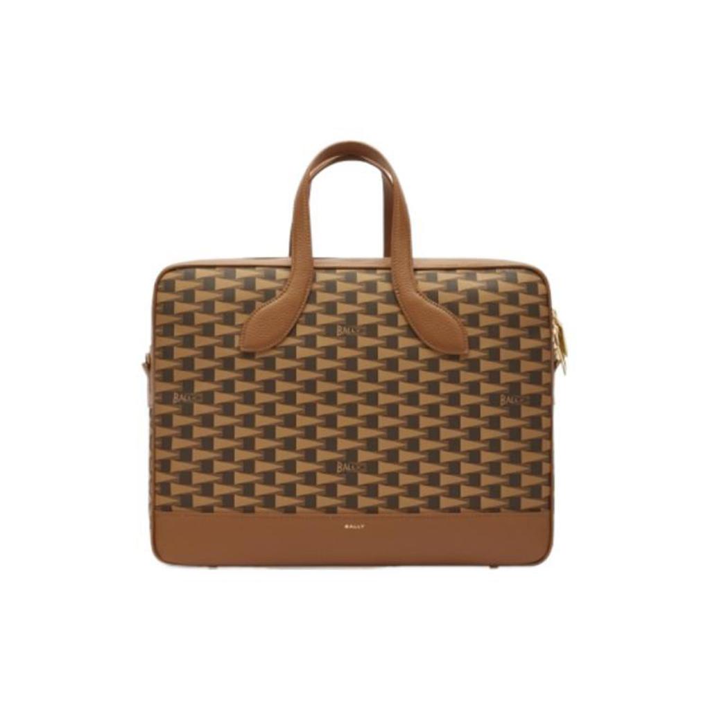 Bally Letter Logo Triangle Flag Print Zipper Leather Shoulder Crossbody Briefcase Men Bags Brown 6304548