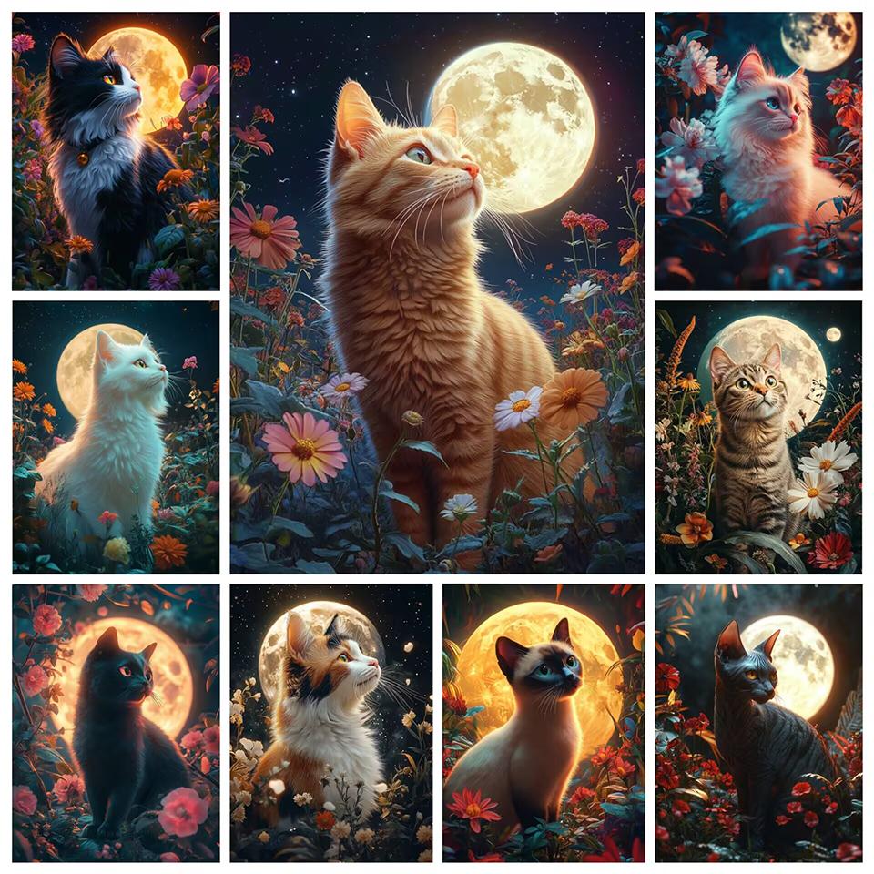New Arrivals Diamond Embroidery Animal Kit Diy Drill Painting Cat Full Mosaic Moon Home Decor Art Handmade Gift