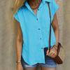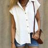 Women's Casual Loose Color Cotton Linen Lapel Short Sleeve Cardigan Tops