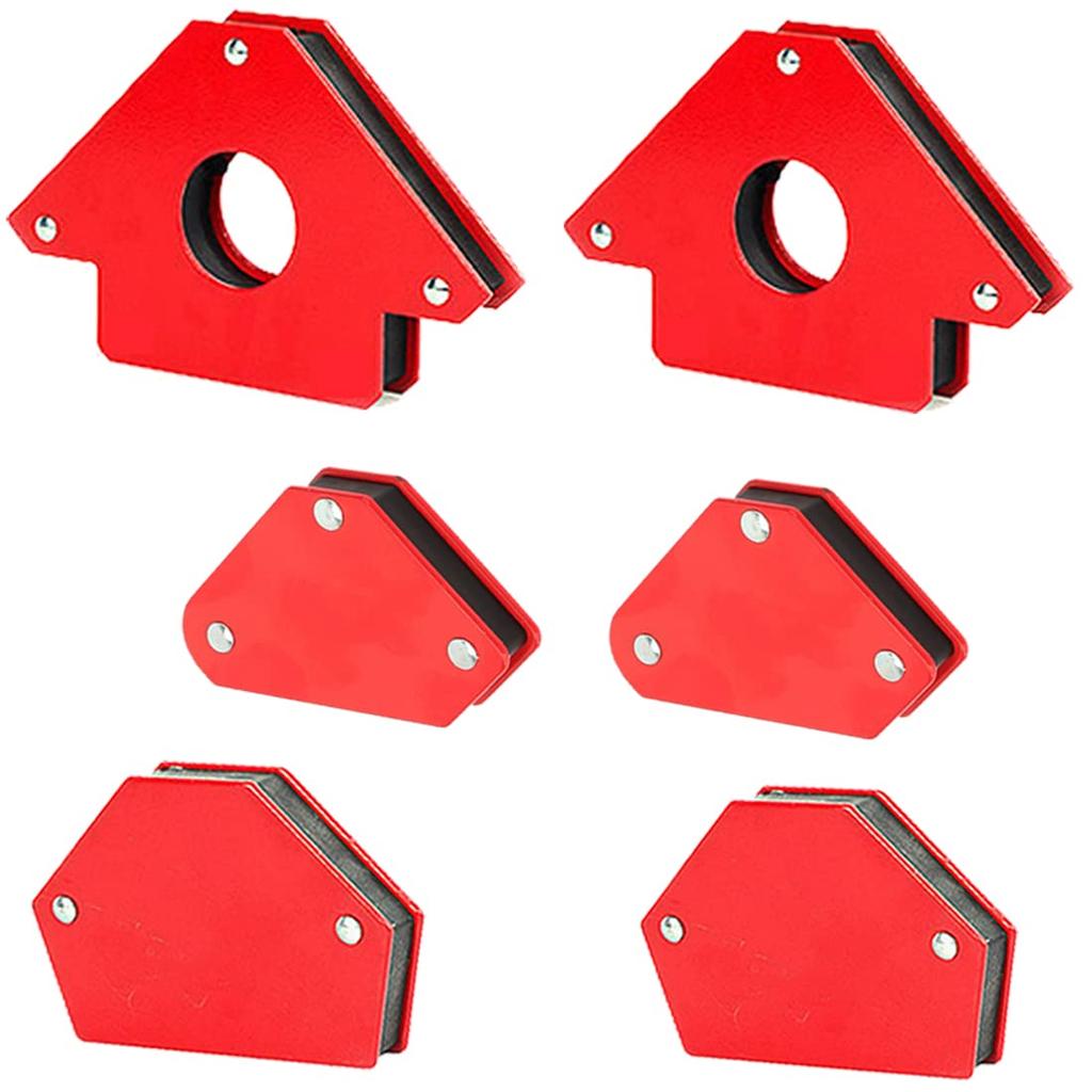 Product Features: (1) Easy to Remove: The product features a round hole design in the center for easy removal. (2) Durable: The welding holder is made of durable construction and can be used for several years without wear. (3) Easy to Store: Easy to Clean; simply turn it off and wipe. Product Information: Product Name: Magnetic Angle Fixing Tool Specifications: Set of 6 Shipping Weight: Approx. 1.2kg Package Size: 24cm x 28cm x 3cm Highly Practical: Welding Positioner The compact tilt arrow design allows you to position plates and pipes at angles of 30°, 45°, 60°, 70°, 90°, and 135°, making it a double-sided bracket for welding and assembly work. Versatile Uses: Welding magnets can be used for more than just welding. They are also ideal for pipe welding and assembly, marking, pipe installation, metalworking, part gluing, surface grinding, hanging applications, and floaters. They also free up your hands during installation. It's a great help to your work: The welding equipment accessories have strong magnetic properties, which improves the safety of the operator's hands and allows you to attach the workpiece at multiple angles.
