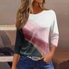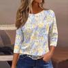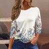 Women's Three-Quarter Sleeve Shirt, Round Neck, Loose Fit, Casual Shirt, Floral Print T-Shirt, Summer