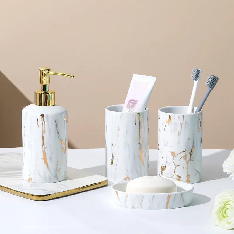 Gold-plated Marble Ceramic Soap Dispenser Gold Press Lotion Bottle Mouthwash Cup Soap Shampoo Dispenser Bathroom Accessories