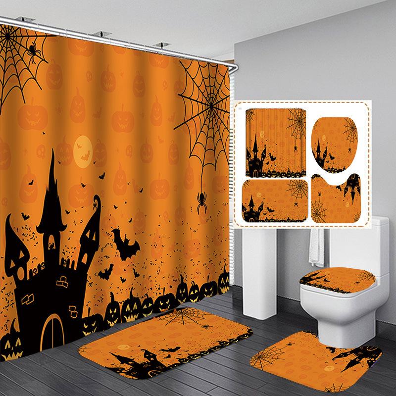 Halloween Elements 3D Digital Printing Bathroom Four-Piece Shower Curtain Partition Curtain Shower Curtain