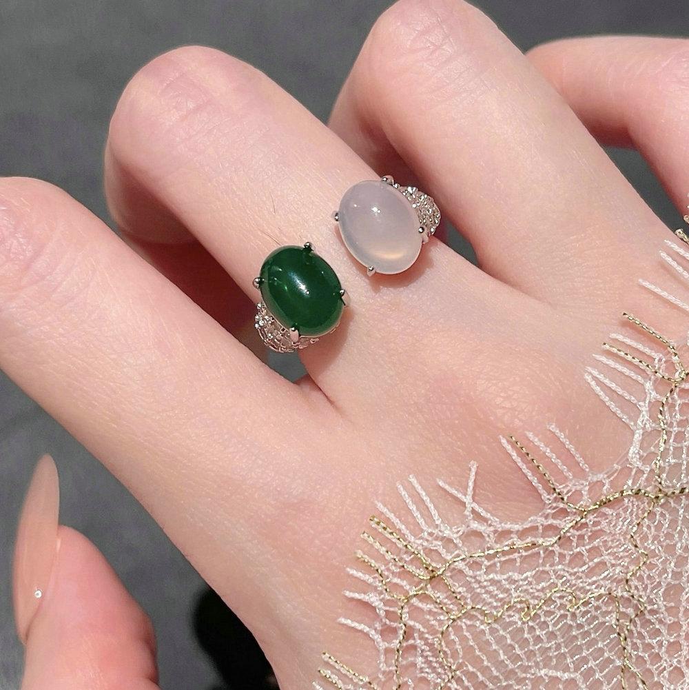 Jewelry Chalcedony Agate Egg Surface, Sunflower Ring, New Chinese White Chalcedony Double Bead Contrasting Ring