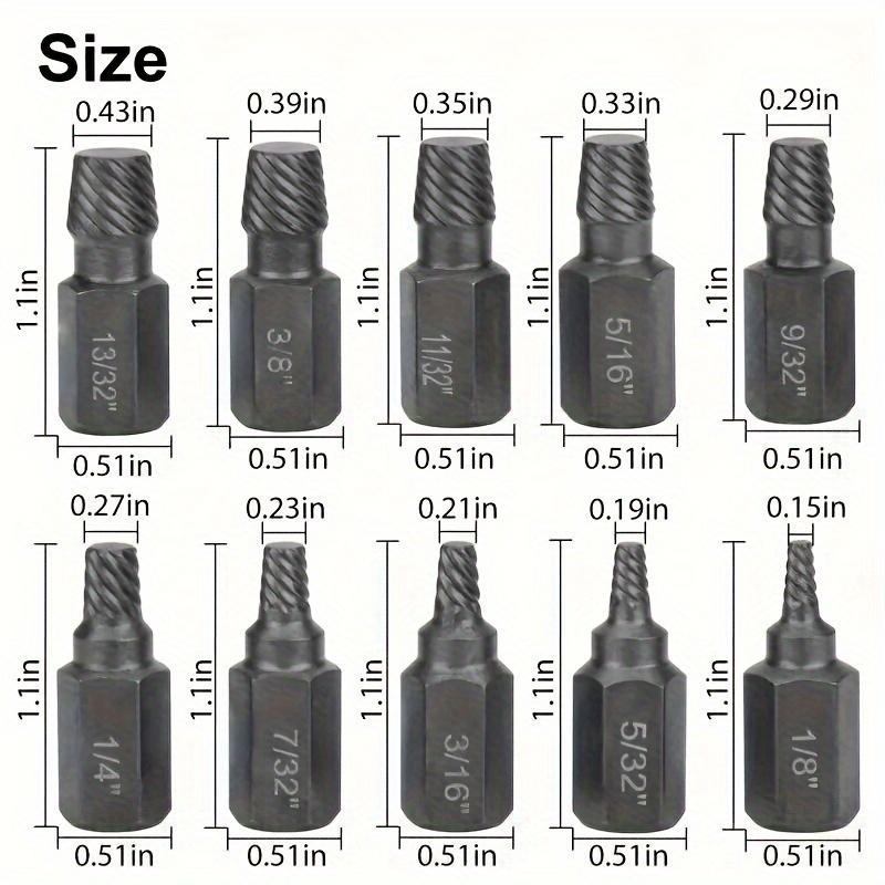 10Pcs Multi-Spline Hex Shank Screw Extractor Set Broken Bolt Remover Damaged Screw Extractor Tool Kit