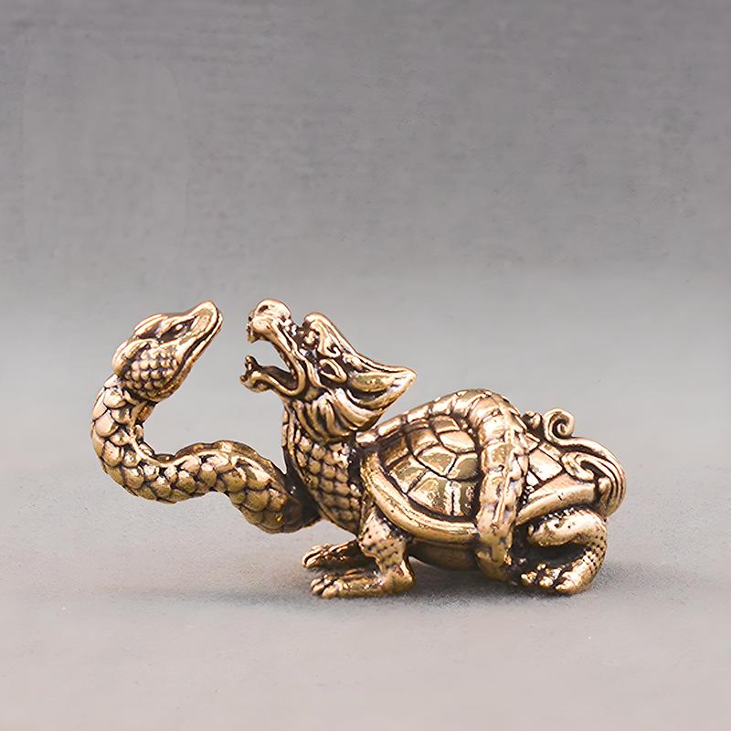 Retro Brass Mythical Python Turtle Head Turtle Body Figurines Miniatures Lucky Animal Statue