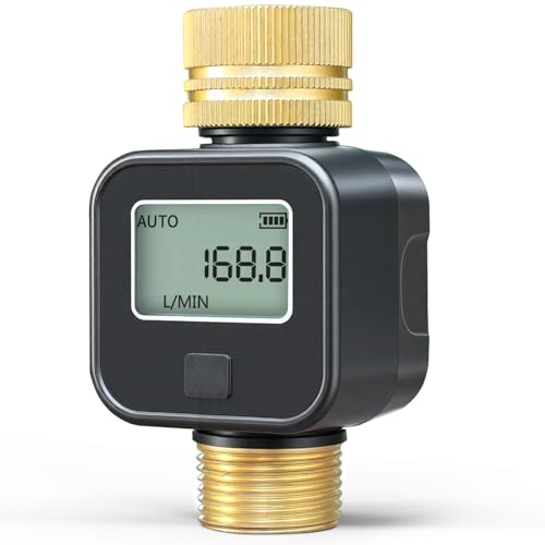 Insoma Water Flow Meter with Brass Inlet and Outlet, High-Precision Measurement, Measures Gallon/Liter Consumption and Flow Rate for Outdoor Garden Ho