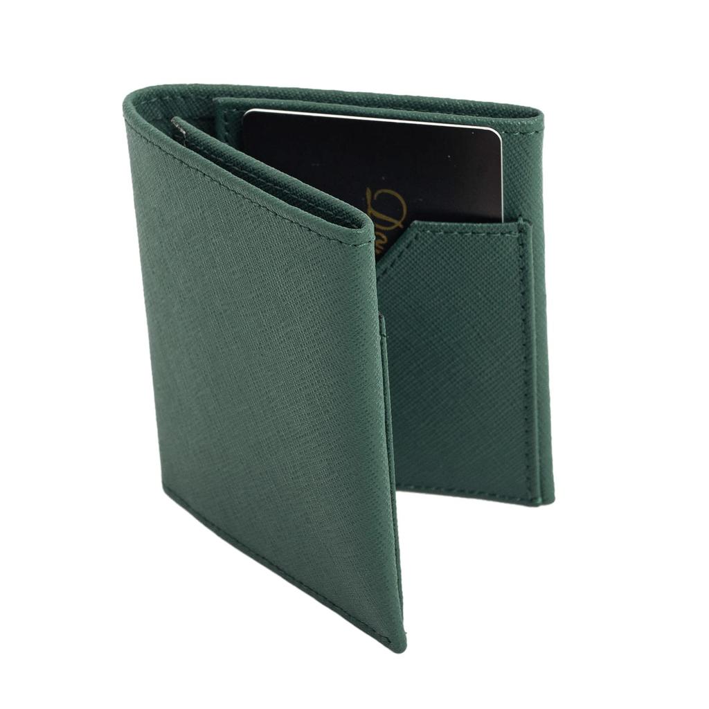 [Dom Teporna] Men's Bi-fold Wallet, No Coin Pocket, Compact, Ultra-thin 10mm, Saffiano Leather, Money Clip, Green