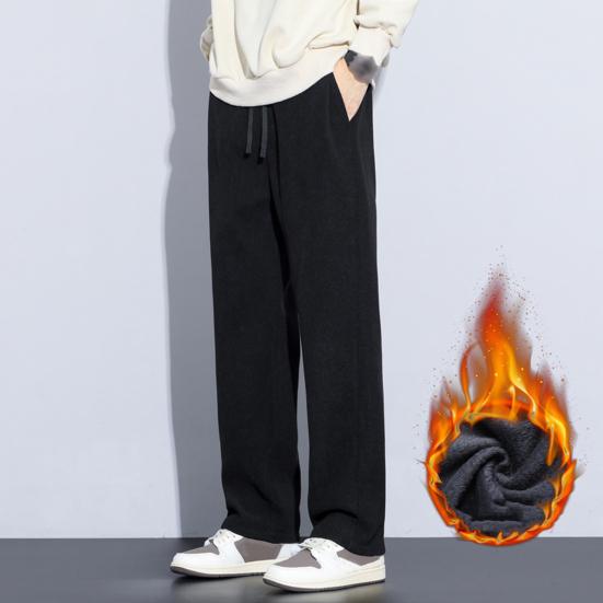 Winter Fall Men Sport Pants Loose Elastic Waist Thick Plush Pockets Plus Size Loose Straight Solid Color Exercise Trousers Daily Wear Sweatpants