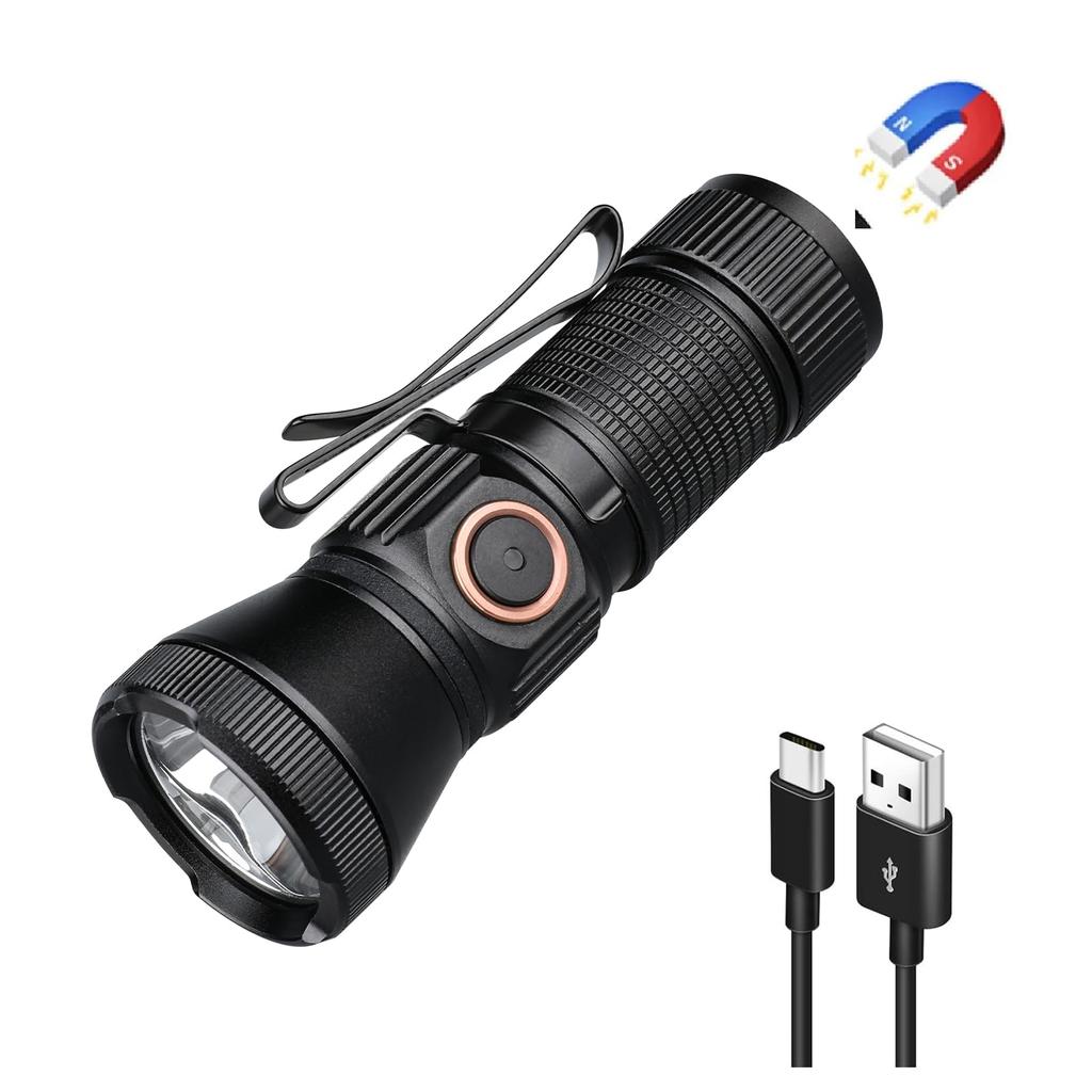 Convenient Magnetic Tail Design & Bidirectional Clip: The flashlight features a magnetic tail cap that can be attached to metal surfaces like tables and walls, freeing up both hands for increased practicality and ideal for hands-free mechanical work. The handheld flashlight also features an upgraded bidirectional clip that can be clipped to a hat, pocket, or other items. Its ultra-compact, palm-sized design and lightweight weight of just 67.7g make it even more portable with a lanyard hole. Perfect for outdoor activities like camping, fishing, hiking, hunting, adventures, and mountain climbing.