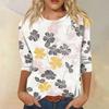 Women's Fashion Casual Round Neck 3/4 Sleeve Loose Printed T-Shirt Ladies Top