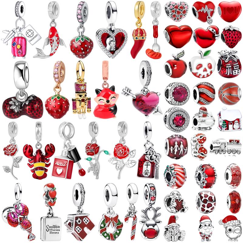 NEW Sparkling Red Series Charm Bead Clip Fit Original Silver Bracelet DIY Jewelry Christmas Gift Reindeer Motorcycle Dangle