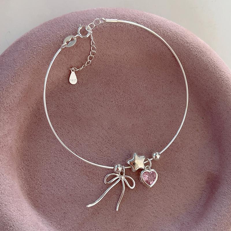 925 Silver Zircon Love Heart Bracelet For Women Bowknot Stars Bead Snake Bone Chain Jewelry Gift Dropship