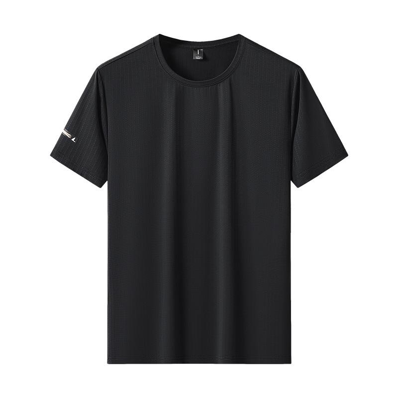 Ice Silk Short Sleeved T-shirt for Men's Summer Running, Breathable Fitness, Quick Drying, Short Sleeved, Round Neck
