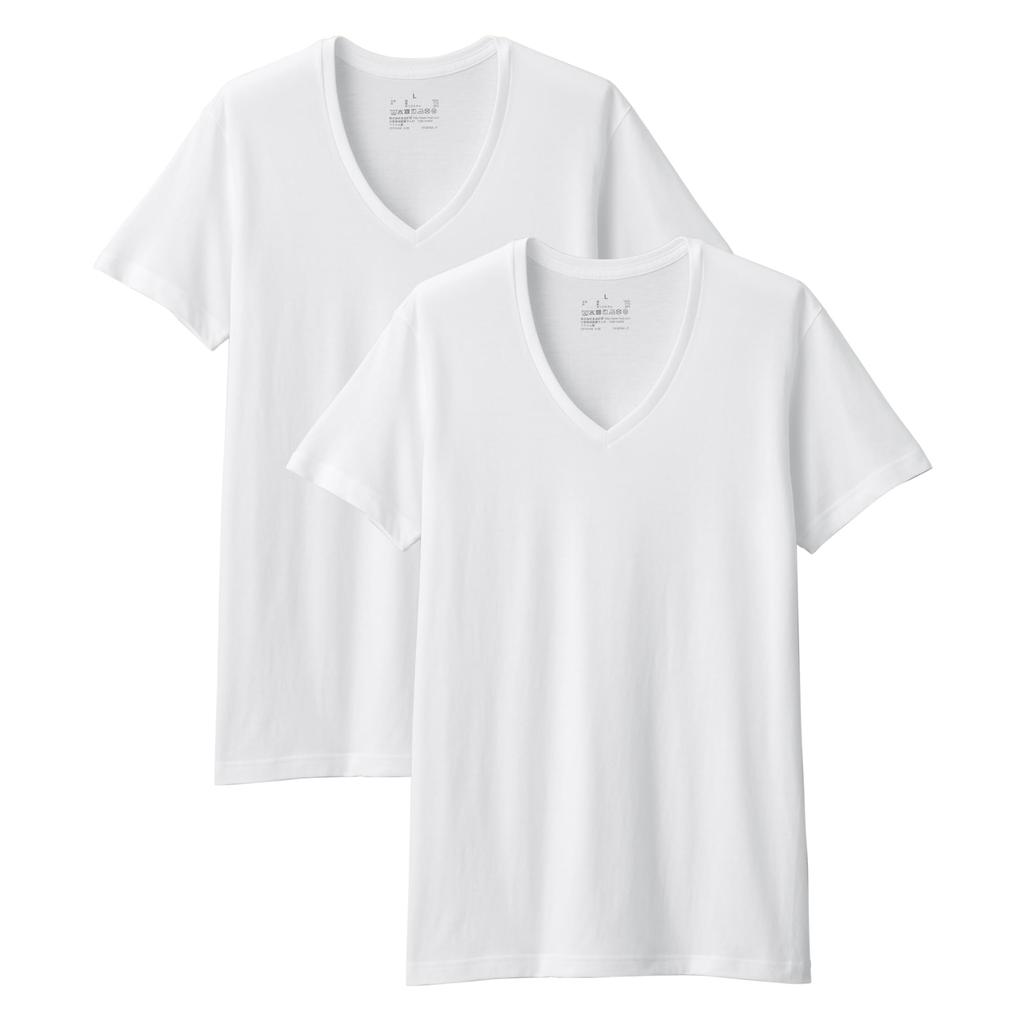 MUJI Seamless FA19FA5A White Size L Men's V-Neck Short-Sleeve T-Shirt (2-Pack) Men's