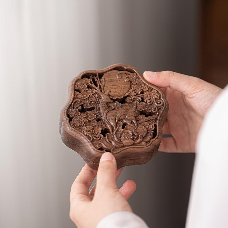 Incense Box/wooden New Chinese Carved Three-dimensional Hollow Pattern Indoor Desktop Placement Decoration Religious Supplies