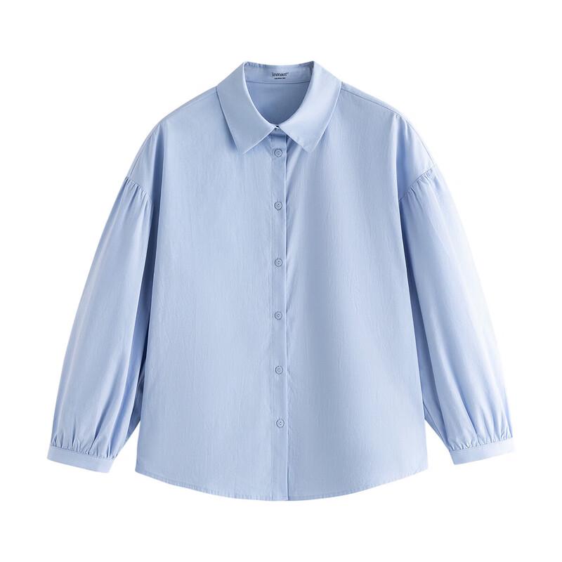 INMAN Women's Pure Cotton Puff Sleeve Lapel Shirt