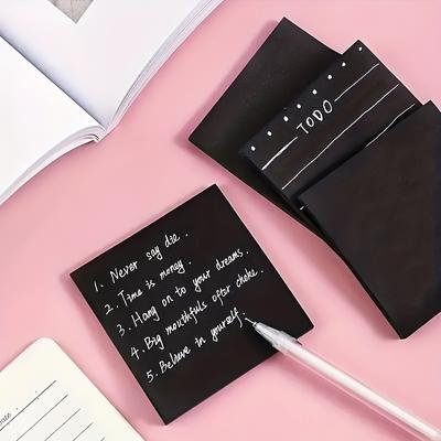 5pcs 50pages Pure Black Sticky Notes Pad - Tear-Off, Reusable, Stationery for Handbook, School, Office, and Home Use - Perfect for Notes, Messages