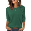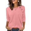 Women's Color Casual Fashion Round Neck Button Seven Quarter Sleeve Top