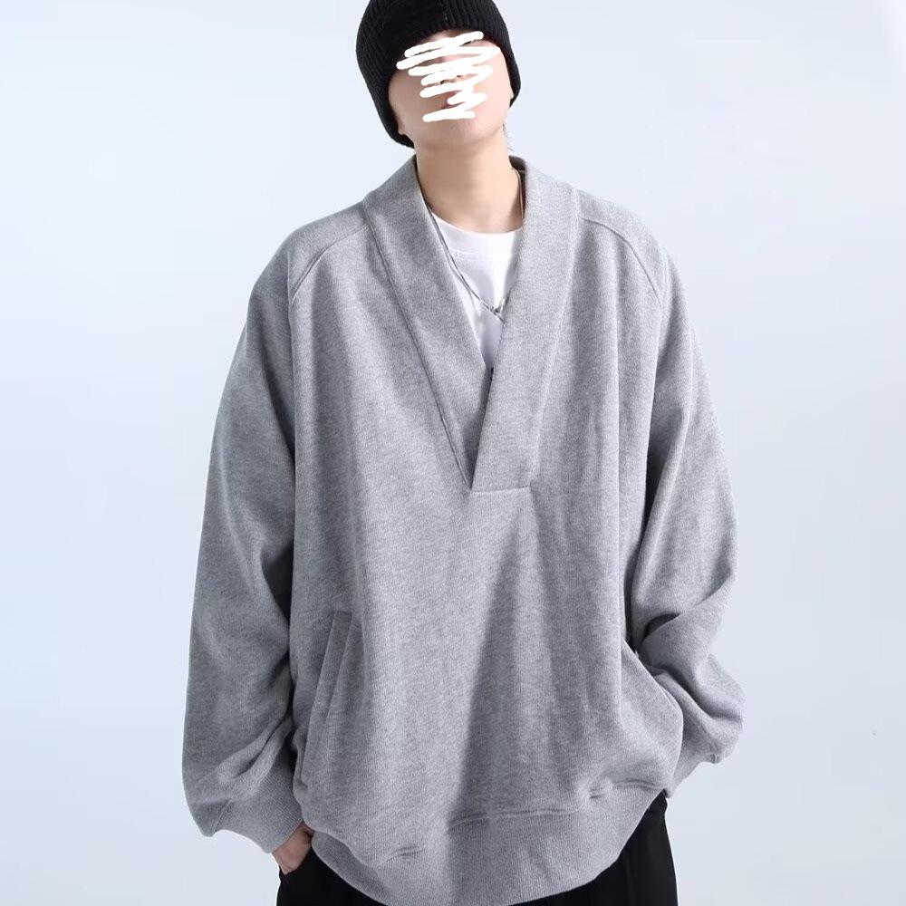 Large Size V-neck Sweater Jacket Men's Autumn and Winter Design Sense Loose Silhouette Big Sweater Casual Long-sleeved Top Tide