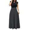Women Floral Print Color Block Round Neck Beach Party Short Sleeve Maxi Dress
