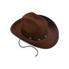 Step into the Wild West with this classic cowboy hat. Crafted from soft, durable felt, it features a wide curved brim and a tall creased crown - timeless elements of authentic Western style. The decorative hatband with metal studs adds a rustic touch, while the attached chin strap ensures the hat stays securely in place during rodeos, parties, or costume events.