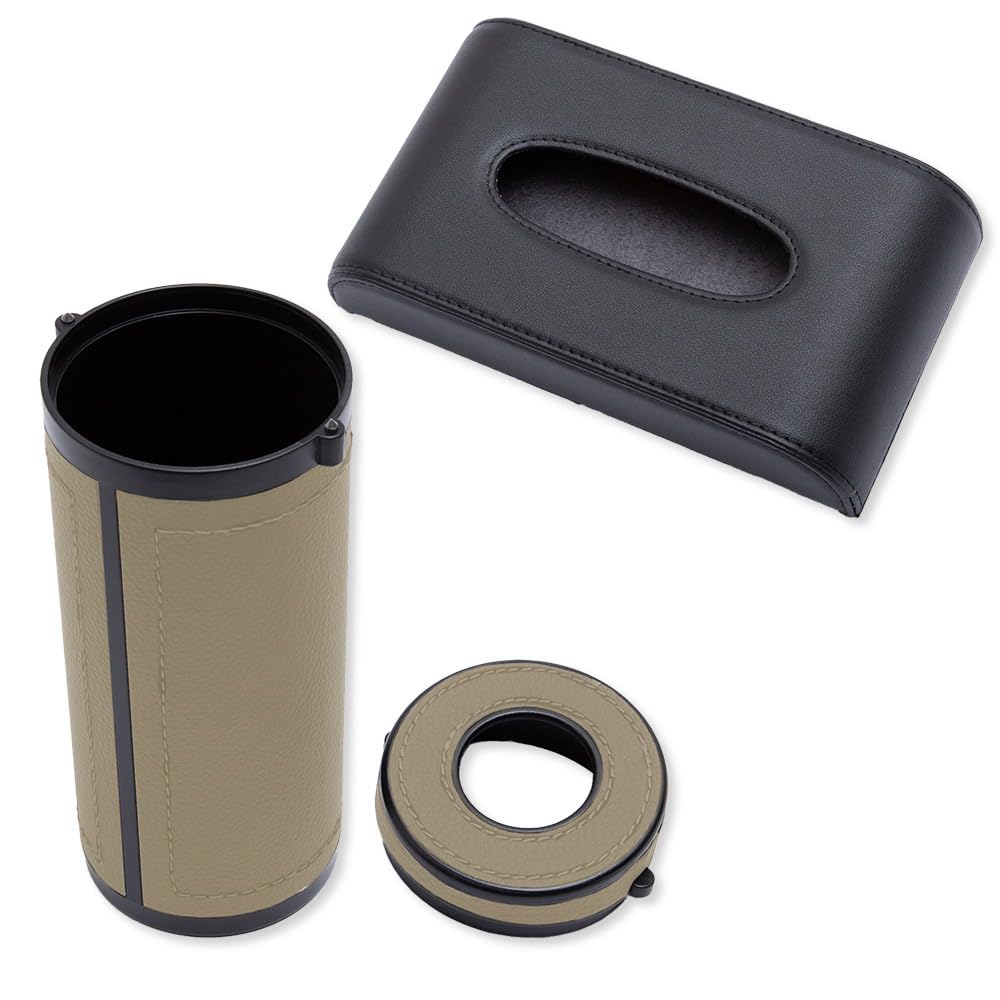 Tissue Case Sun Visor Bottle Set Black Universal PU Leather Synthetic Leather Visor Easy Tissue Storage Goods Compact S YOURS (for + Type) 2-piece