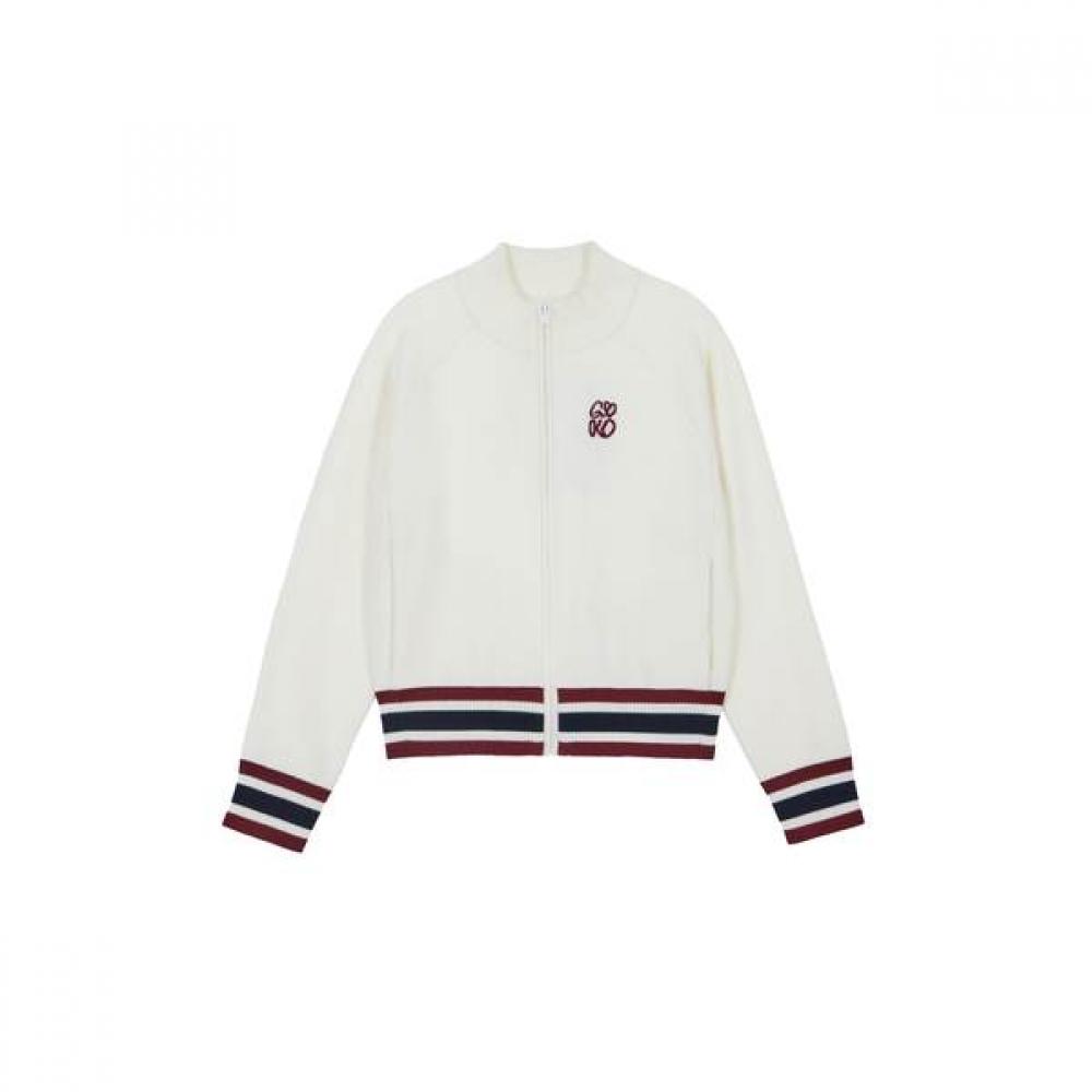 GOXO Wool Knit Zip Up Classic Logo White