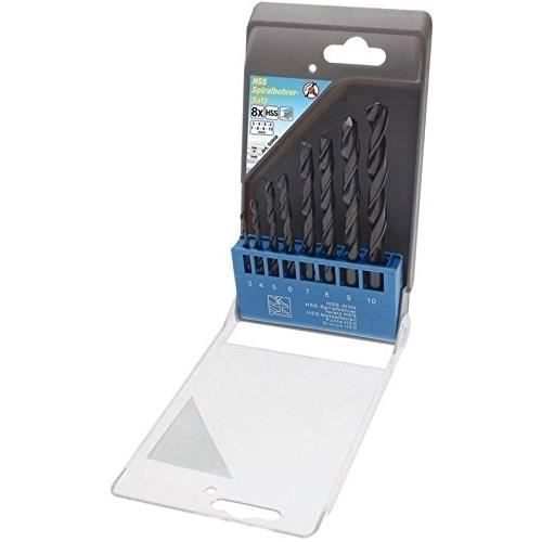 Forets hélicoïdaux en acier HSS - KRAFTMANN - Set de 8 pièces - Diamètres 3 à 10 mm - Noir