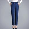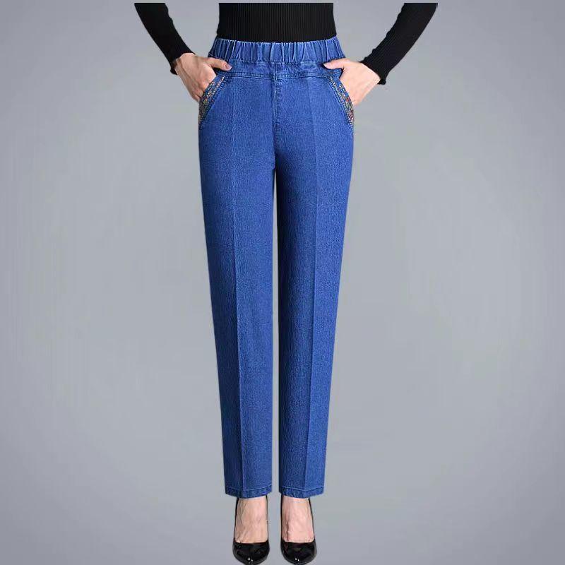 Women's Summer Straight-Leg Elastic-Waist Jeans: Stretch Slimming Trousers for Middle-Aged Moms, Loose-Fit High-Waisted