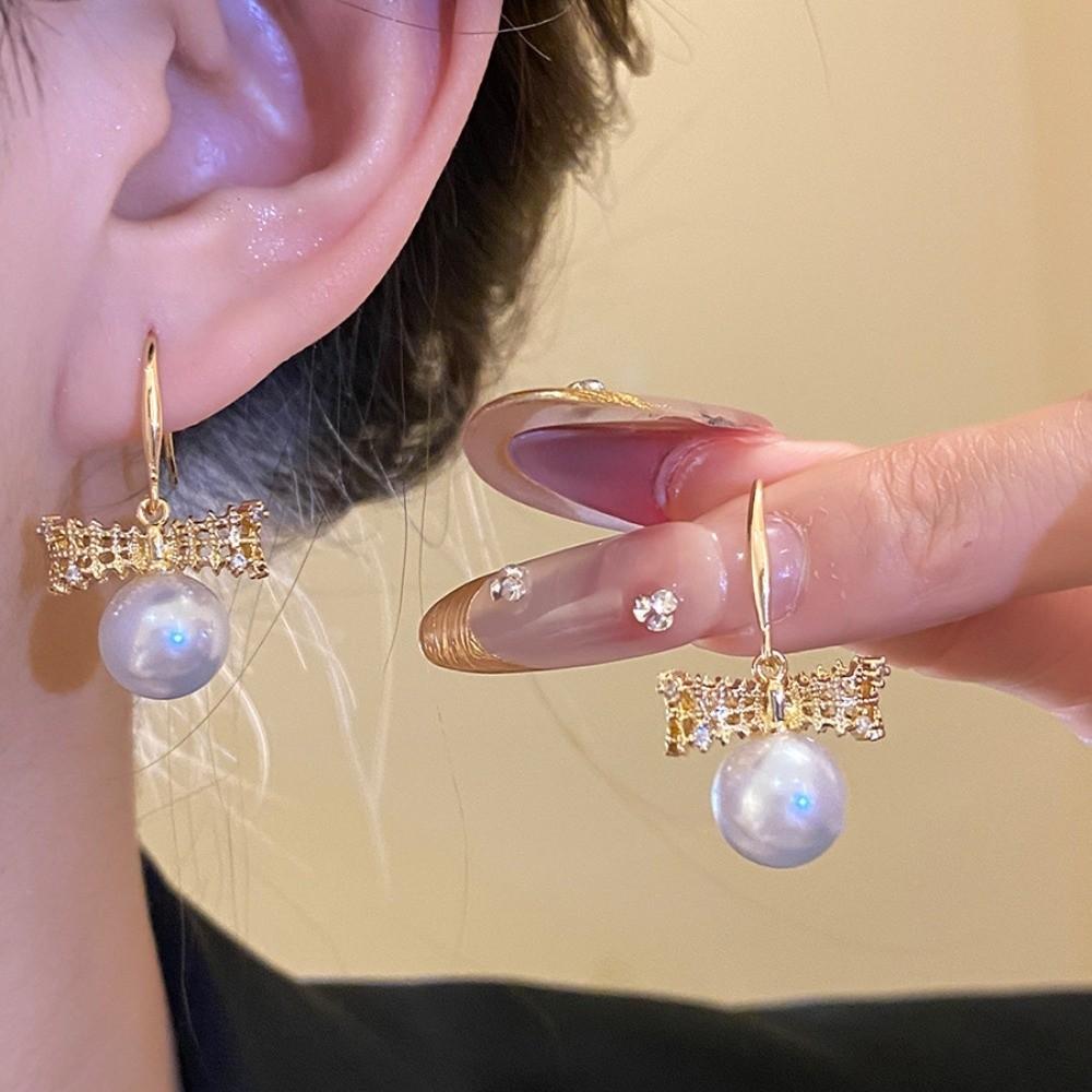 Simulation Freshwater Pearl Bow Pearl Long Earrings Shell Beads Ear Hook Drop Earrings Girls Gift