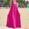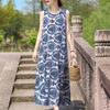 Elegant Sleeveless Dress Summer Fashion Casual Loose Vintage Print Long Dresses for Women Summer Clothes