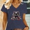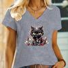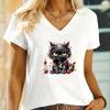 Black Christmas Angry Cat Design T Shirts Womens Short Sleeve Shirt Funny Cute Kitten V Neck Tshirt Women Fashion Animal Tshirt