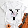 Vintage Flower Alphabet Womens Clothing Letter M Floral Monogram Graphic T Shirts Women AZ 26 Alphabet Gift Shirt for Women