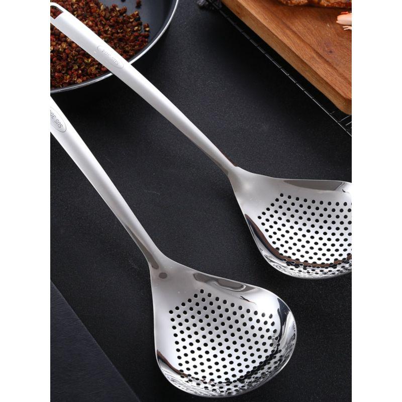 Pepper Big Strainer 304 Stainless Steel Spoon Long Handle Large Cooking Spoon Heart-Shaped Soup Ladle Perforated Ladle For Home Hot Pot Spoon