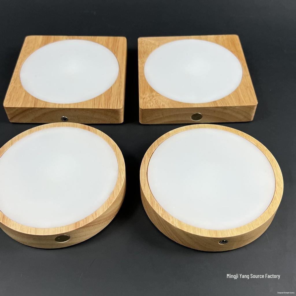Touch LED Solid Wood Wireless Night Light Ornament with Acrylic Display Pad