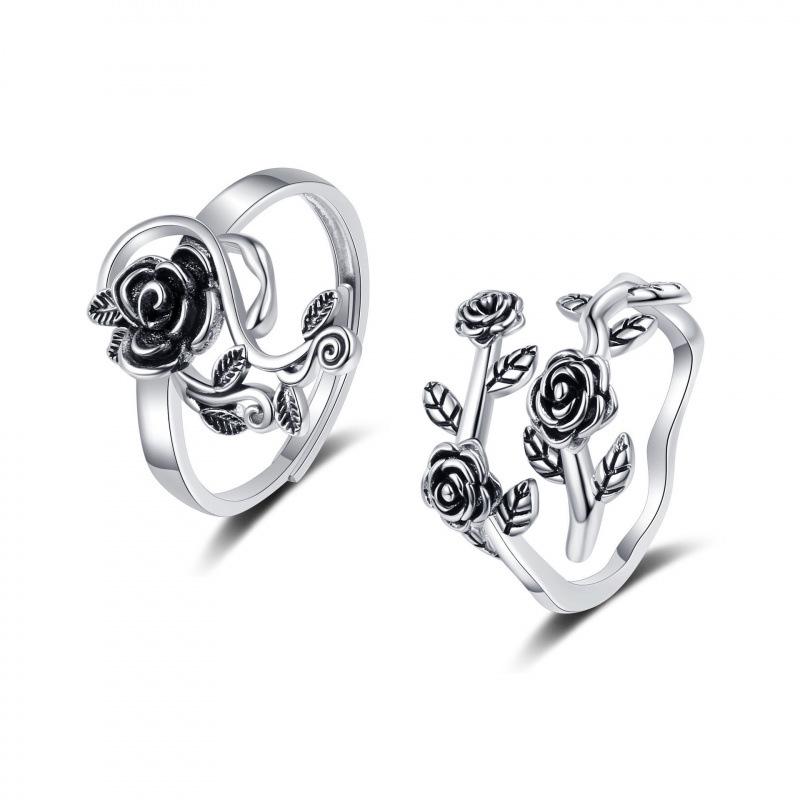 Silver Retro Thai Rose Leaf Ring - Women's Versatile Temperament Index Finger Accessory