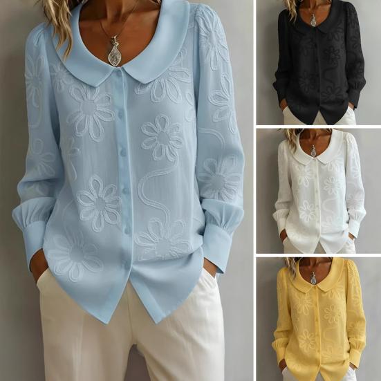 Women's shirt features a loose, regular fit designed for optimal comfort and breathability. Crafted from lightweight, skin-friendly polyester fiber, it ensures a pleasant wearing experience throughout the day. Its versatile design complements various outfits, easily pairing with casual pants, suit pants, jeans, or skirts to create a stylish and casual look.