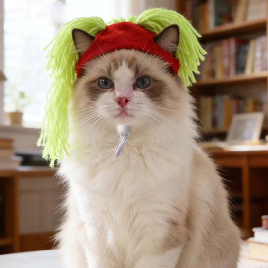 Unique Playful Design: The hat boasts a fun and exaggerated yarn ponytail that instantly transforms your pet into an adorable rock star. Its bright colors and quirky shape make your furry friend stand out, perfect for photoshoots, parties, or everyday fun.