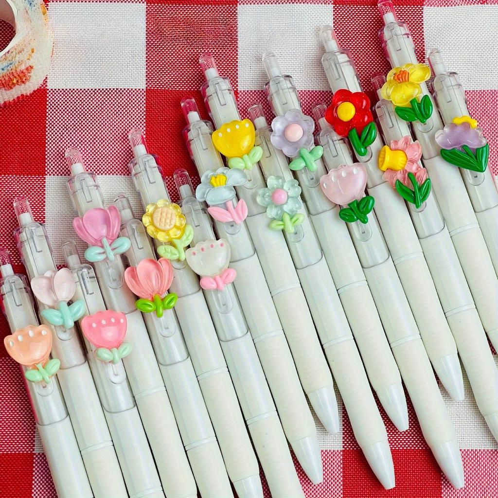 1pc Cute Flower Gel Pens Fast Drying ST Study Pens for Students Kawaii Pens High Quality Exam Writing Supplies Floral Style ST Tip Neutral Pen, Limite