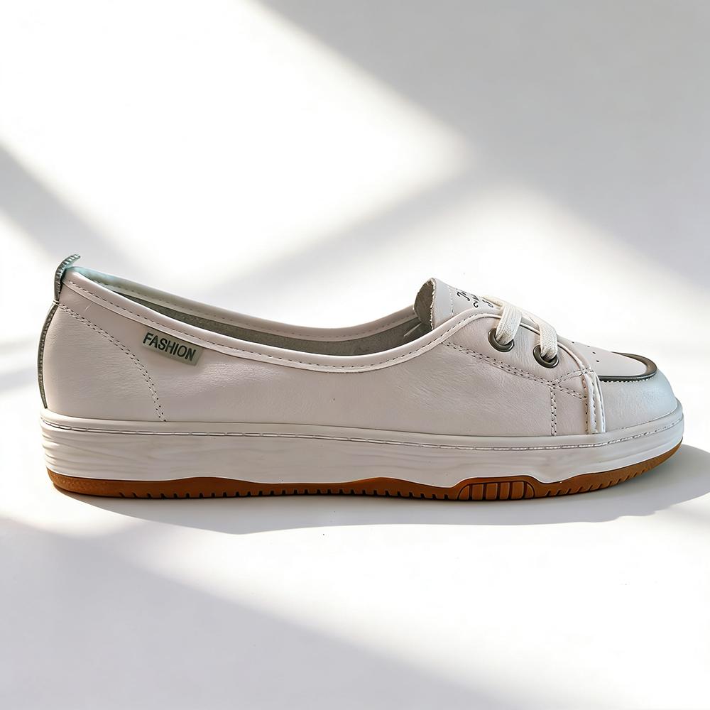Women White Leather Casual Sneakers Slip-On Comfort Walking Shoes Fashion Loafers Flat Cowhide Lightweight Daily Wear