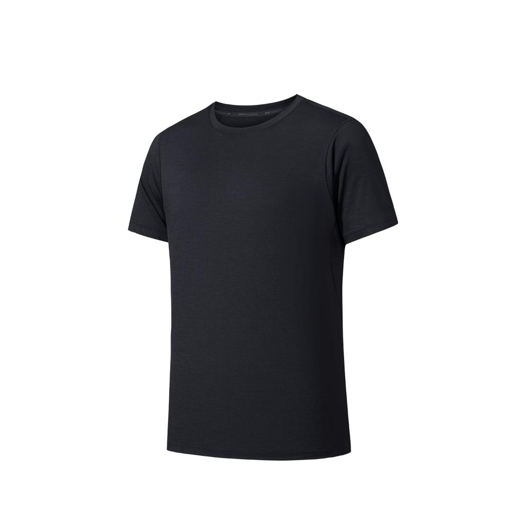 Anta Champion Mens Short Sleeve Knitted T-Shirt Summer Sports Tee Men Tops Basic-Black 152620107-4