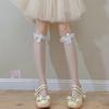 Women's Japanese Lolita Bow Lace Mid-Calf Socks - Black, Thin Summer Silks