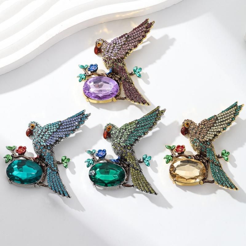 Winged Parrot Brooch High-End Women'S Luxury Animal Brooch Elegant Niche Design Lapel Pin Suit Coat Jewelry Accessory