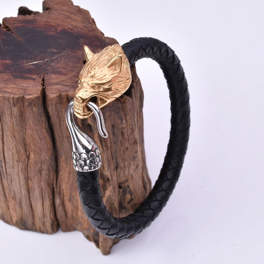 Hot Selling Viking Wolf Scalp Leather Rope Bracelet Hip Hop Men's Explosive Wholesale