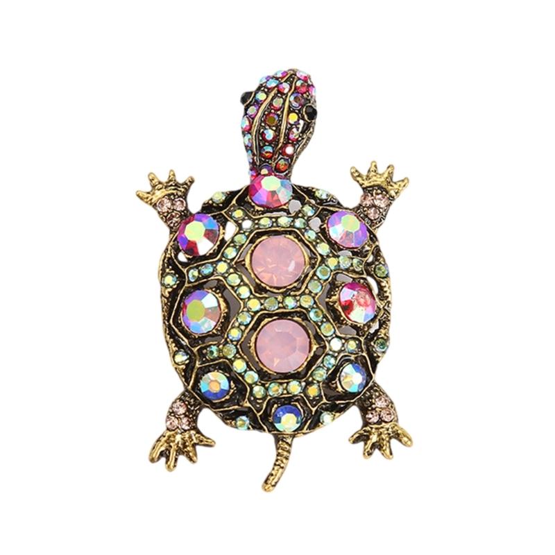 Sparkling Rhinestones Turtles Brooches Vintage Alloy Animal Pins Banquet Party Accessories Suitable for Women and Men